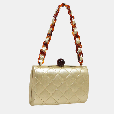 Chanel Gold Leather Quilted Acrylic Chain Shoulder Bag 1159132 (lpn30022358)