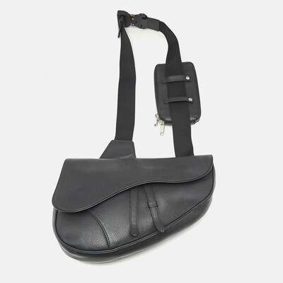 Dior Black Leather Maxi Saddle Bag 1163462 (чёрный, lpn30029582)