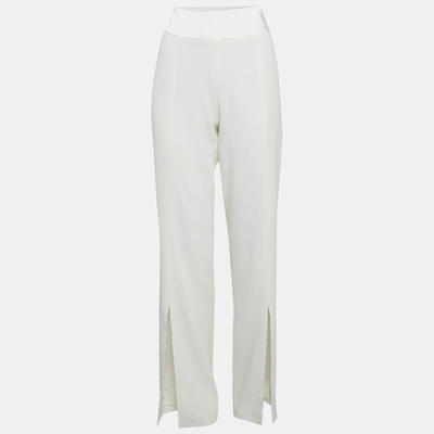 Elevate your casual wardrobe with these ivory trousers, having the fine craftsmanship of Jonathan Simkhai. Fashioned from crepe, these flared pants show sophistication with their subtle satin trims.