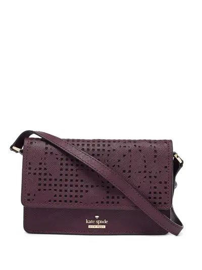 burgundy perforated design adjustable shoulder strap gold-tone logo plaque magnetic snap closure Condition: GOOD. This previously owned and used item is in good condition with minimal signs of use. This may include fading of material or plating and scratches.