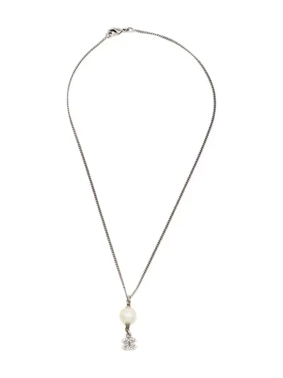 silver-tone faux-pearl detail signature Interlocking CC logo delicate chain lobster claw fastening Condition: GOOD. This previously owned and used item is in good condition with minimal signs of use. This may include fading of material or plating and scratches.