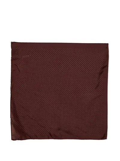 burgundy silk polka dot print solid border finished edge Condition: GOOD. This previously owned and used item is in good condition with minimal signs of use. This may include fading of material or plating and scratches.
