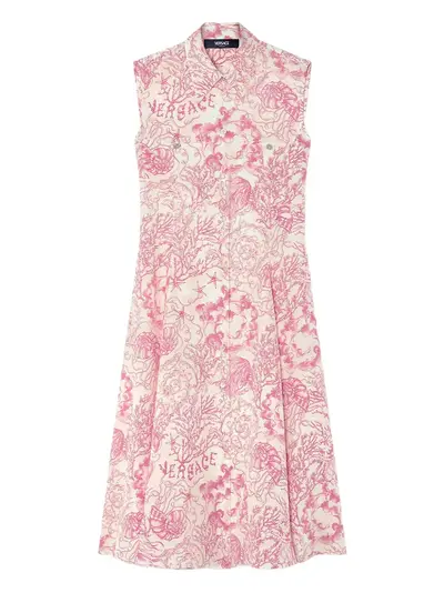 pale pink front button fastening Underwater Barocco pattern signature Medusa Head buttons sleeveless flared skirt