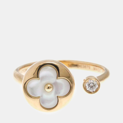 Louis Vuitton Sun Blossom 18K Rose Gold Diamond Mother of Pearl Band Ring EU 50 1165380 (lpn30053627)