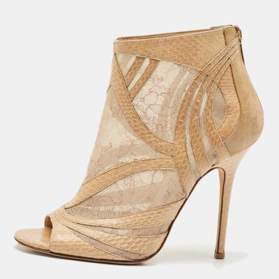 Jimmy Choo Beige Snakeskin Leather and Lace Ankle Length Boots Size 39 1160980 - 1 small