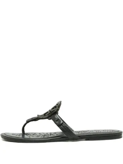black signature Double T motif cut-out detail flat sole thong strap branded footbed Condition: GOOD. This previously owned and used item is in good condition with minimal signs of use. This may include fading of material or plating and scratches.