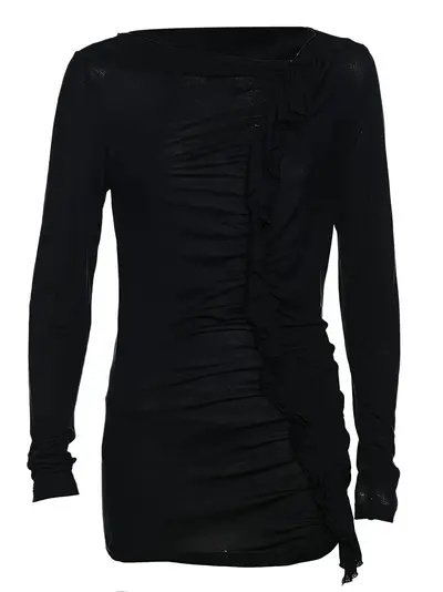 black boat neck long sleeves draped design asymmetric hem Condition: UNWORN. This item is previously owned but remains unworn and in its original condition. However, it does not come with its original tags.