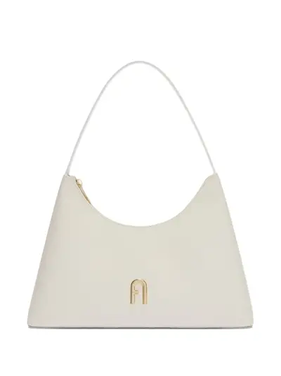 white curved top zip fastening single top handle gold-tone logo leather construction