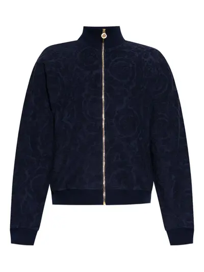 navy blue Barocco jacquard pattern zip fastening ribbed cuffs ribbed hem gold-tone Medusa head zip puller