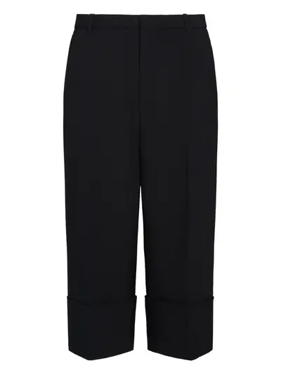black wide leg cuffed hem high-waisted belt loops concealed front fastening