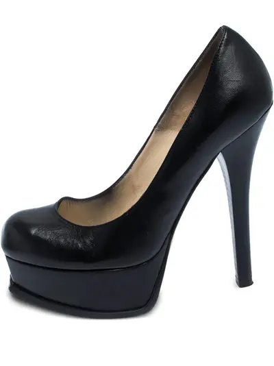 black rounded toe platform sole high stiletto heel branded insole Condition: GOOD. This previously owned and used item is in good condition with minimal signs of use. This may include fading of material or plating and scratches.