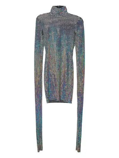 black cotton holographic effect sequin embellishment high neck long sleeves concealed rear zip fastening straight hem Condition: GOOD. This previously owned and used item is in good condition with minimal signs of use. This may include fading of material or plating and scratches.