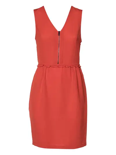 orange V-neckline zip fastening ruffled waistband sleeveless Condition: GOOD. This previously owned and used item is in good condition with minimal signs of use. This may include fading of material or plating and scratches.