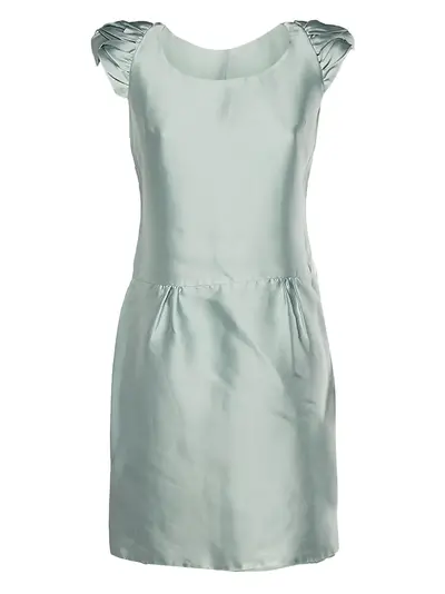 blue silk rear zip fastening short sleeves straight hem Condition: GOOD. This previously owned and used item is in good condition with minimal signs of use. This may include fading of material or plating and scratches.