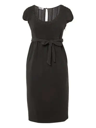 black scoop neckline keyhole back tied waist pleated detail Condition: GOOD. This previously owned and used item is in good condition with minimal signs of use. This may include fading of material or plating and scratches.