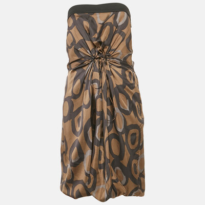 Chloe Green Printed Silk Knit Detail Strapless Short Dress M 1167807 - 1