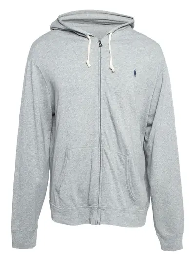 grey cotton full zip closure hooded neckline signature Polo Pony motif front pouch pocket Condition: GOOD. This previously owned and used item is in good condition with minimal signs of use. This may include fading of material or plating and scratches.