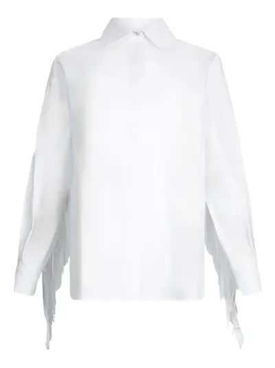white front button fastening long sleeves fringed edge