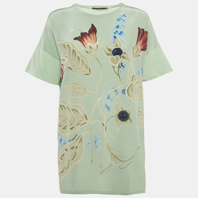 Gucci Green Print Silk and Cotton Half Sleeve Top L 1169885 - 1 small