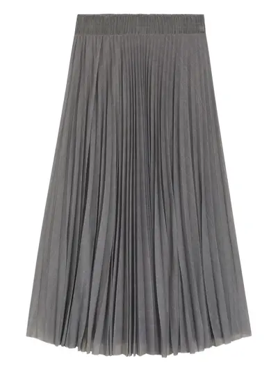 grey fully pleated A-line elasticated waist semi-sheer construction