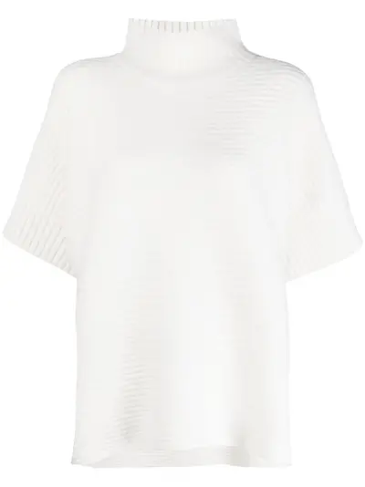 knitted high neck top from Max Mara (VIP) featuring white, cashmere, knitted construction, high neck, short sleeves and straight hem.