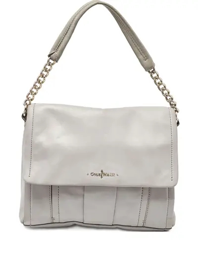 grey leather pleated detailing front panel single top handle chain-link detail gold-tone hardware Condition: GOOD. This previously owned and used item is in good condition with minimal signs of use. This may include fading of material or plating and scratches.