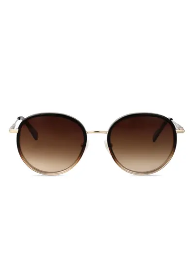 gold-tone round frame brown gradient lenses These glasses come with a protective case.