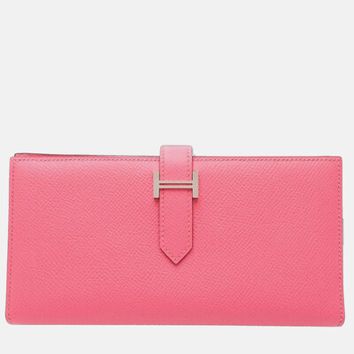 The Hermès Long Wallet Bearn Soufflet in pink Epsom leather combines vibrant color with structured elegance. Its signature H tab closure and multiple compartments offer both style and functionality. A refined accessory with a playful touch.