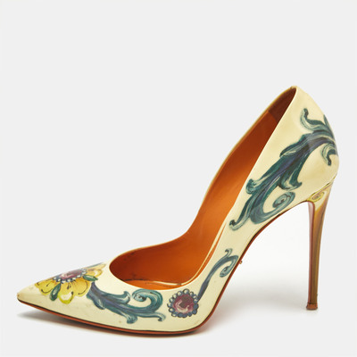 Be ready for constant attention and admirable gasps from your audience when you walk in these pumps from Dolce and Gabbana. Crafted from multicolor floral printed Saffiano patent leather, they carry pointed toes and well cut vamps. The pair is complete with 9.5 cm heels and comfortable leather lined insoles.