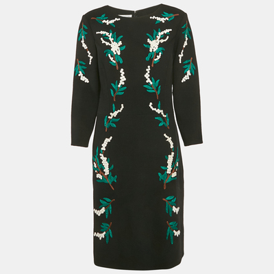 Elegance redefined, this Oscar de la Renta dress in black wool features exquisite embroidery and a midi cut. Ideal for galas or winter soirées.