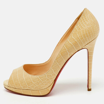 Christian Louboutin Cream Crocodile Leather Yolanda Peep Toe Pumps Size 39 1171159 (lpn30085160)