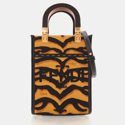 The Fendi Mini Sunshine Shopper in canvas blends compact charm with signature edge. Featuring bold FENDI lettering and tortoiseshell top handles, it’s both playful and polished. A lighthearted twist on everyday carry.