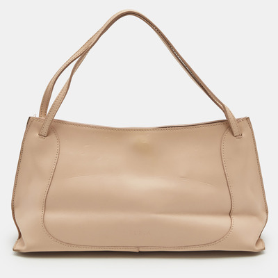Soft in tone and structure, this pre loved Furla womens shoulder bag is crafted from smooth leather in a warm peach shade. The simple shape and flat handles make it easy to carry every day.