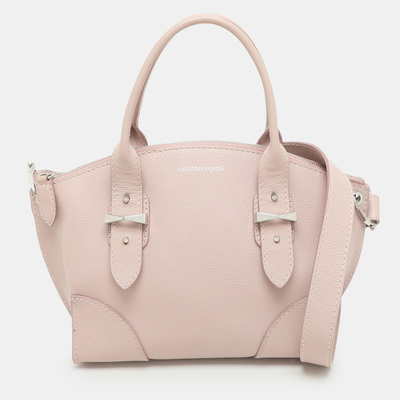 Polished yet playful, this small satchel by Alexander McQueen stuns in soft pink leather with strong lines and signature hardware.