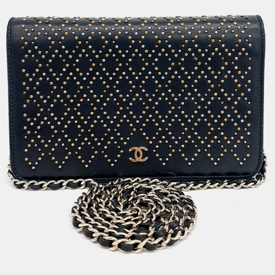 Chanel Black Leather WOC Studded Mini Crossbody Bag 1170857 (чёрный, lpn30088356)