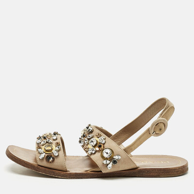 Prada Beige Suede Crystals Embellished Flat Sandals Size 38 1169384 (бежевый, lpn30088844)