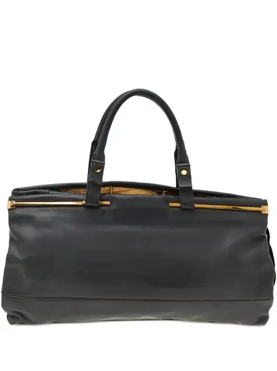 circa 2023 black leather construction gold tone hardware accents two handles structured satchel shape top zip closure Condition: GOOD. This previously owned and used item is in good condition with minimal signs of use. This may include fading of material or plating and scratches.