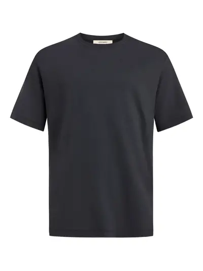 charcoal grey round neckline relaxed fit straight hem classic short sleeves