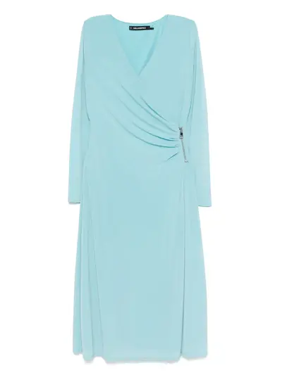 light blue wrap design long sleeves V-neck side zip fastening gathered detail