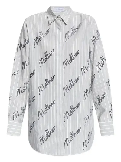 off-white sequin embellishment striped pattern long sleeves classic collar front button fastening