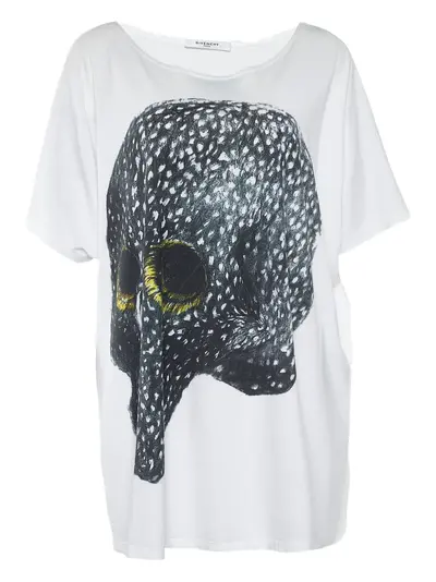 white cotton skull print round neck short sleeves Condition: GOOD. This previously owned and used item is in good condition with minimal signs of use. This may include fading of material or plating and scratches.