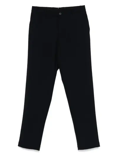 navy blue concealed fly and button fastening belt loops two side slit pockets two rear button-fastening pockets
