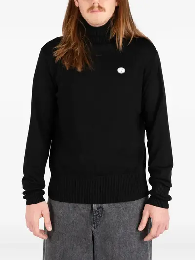 black roll neck long sleeves ribbed cuffs embroidered detail numerical embroidery