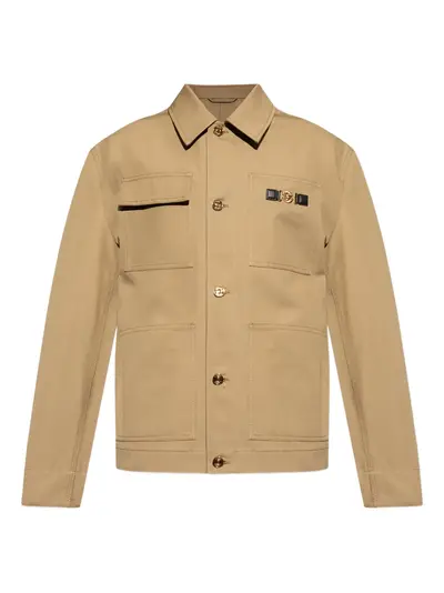 light beige multiple patch pockets button fastening Medusa Head plaque