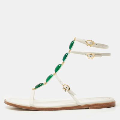 Gianvito Rossi perfects summer sophistication with these white flat sandals. Crafted from leather and wrapped at the ankle, they’re adorned with embellishments for just the right amount of shine.