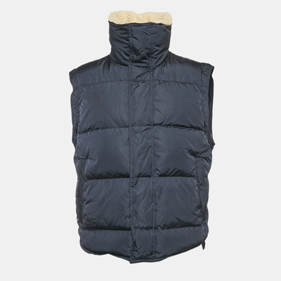 D&G Dolce & Gabbana Navy Blue Shearling Collar Nylon Puffer Vest L 1172129 (lpn30119994)