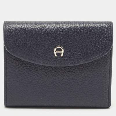 Aigner Dark Blue Leather Logo Trifold Wallet 1172475 (голубой, lpn30120067)
