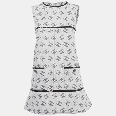 Chanel Grey Monogram Denim Sequin Embellished Shift Dress M 1173269 (lpn30120223)