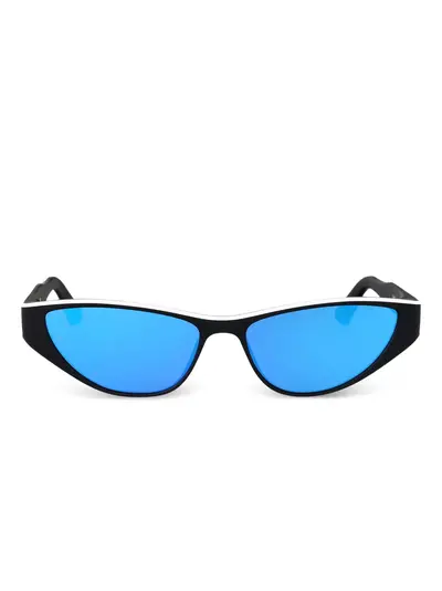 black acetate white trim cat-eye shape mirrored lenses slim arms These glasses come with a protective case.