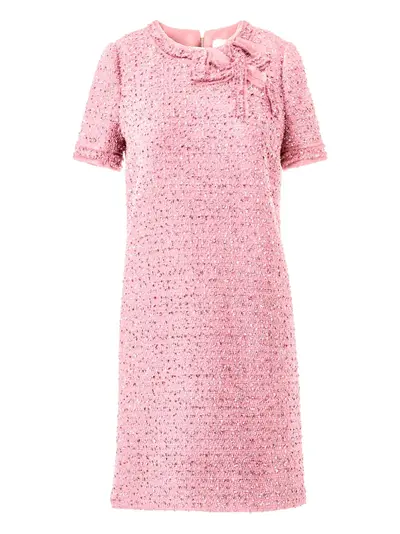 flamingo pink rear zip fastening crew neck short sleeves bow detailing